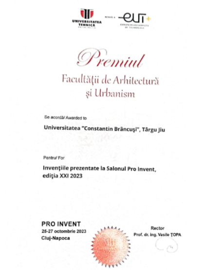 – din partea Facultății de Arhitectură și Urbanism din cadrul UTCN a fost acordat premiul pentru invențiile prezentate la salon;